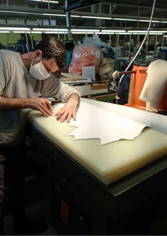 Il faut désormais tailler les empiècements qui constituent nos souliers. Une étape réservée au modéliste qui développe un patron pour chaque modèle. C’est du boulot.