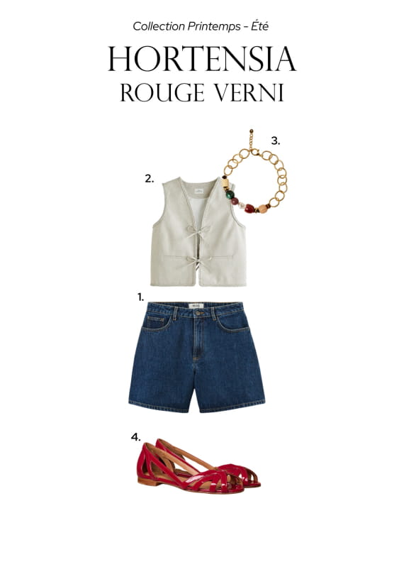 Sans boucles, elles épousent le pied avec finesse grâce à des brides souples et un design bien pensé. Glissées sous un short en jean Balzac Paris et un gilet habillé Maison Stella & Suzie, elles apportent une touche de légèreté. Complétez le look avec des bijoux colorés Sessùn pour une touche de peps et bien sur vos Hortensia rouge verni pour un style estival irréprochable.