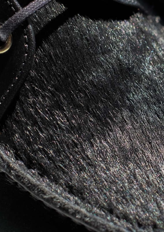 Concrètement, cela signifie qu’il est très proche de la peau de la chèvre à l’état brut, et donc naturellement imperméable ! Sa texture unique rappelant une fourrure lisse et brillante, le cuir Pony est souvent utilisé pour imprimer des motifs animaliers !